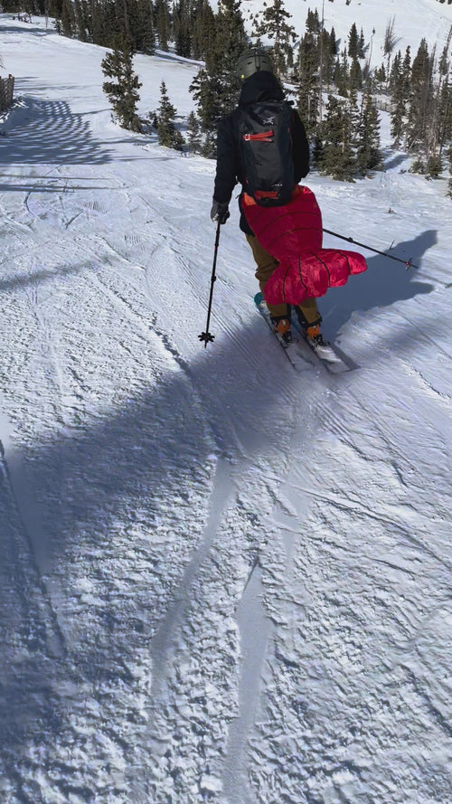Ski tails inflate by catching air as you ski downhill, and quickly deflates once you get to the lift.